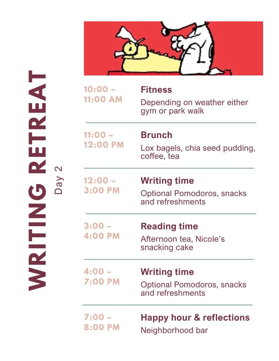 Our at-home writing retreat itinerary